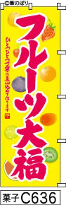 【フルーツ大福】のぼり旗|送料無料 目立つ手書き筆文字[c636]黄色に果物絵赤