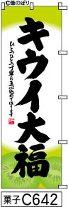「のぼり【キウイ大福】2つの絵黒の手書き筆文字[菓子C642](商標登録番号6807113)」