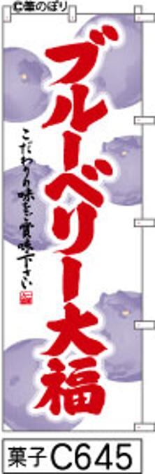 【ブルーベリー大福】のぼり旗|送料無料 目立つ手書き筆文字[c645]白地に6粒絵エンジ