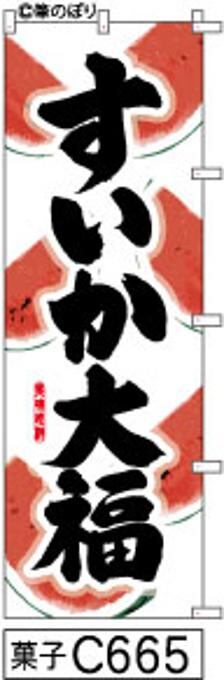 【すいか大福】のぼり旗|送料無料 目立つ手書き筆文字[c665]白地に6個西瓜絵黒
