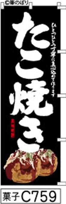 「のぼり【たこ焼き】黒の白抜き手書き筆文字[菓子C759](商標登録番号6807113)」