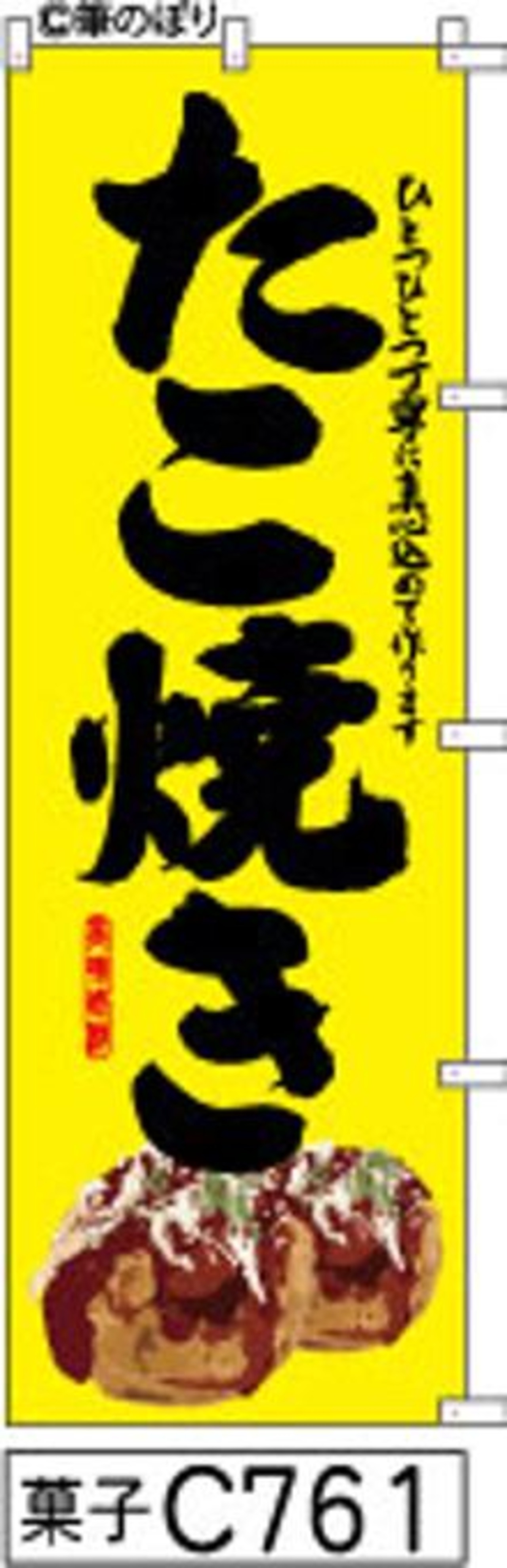 「たこ焼き のぼり【たこ焼き】黄色に黒の手書き筆文字[菓子C761] 商標登録番号6807113」