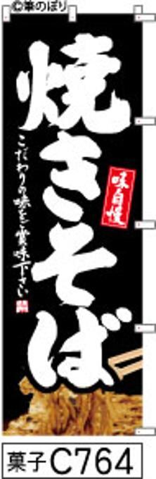 【焼きそば】のぼり旗|送料無料 目立つ手書き筆文字[c764]黒白抜き