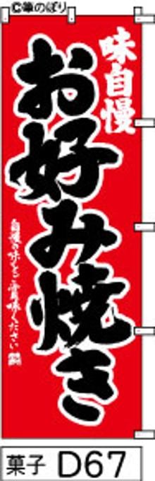 「のぼり【お好み焼き】赤に黒の手書き筆文字[菓子D067](商標登録番号6807113)」