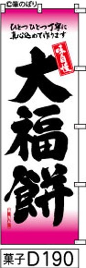 【大福餅】のぼり旗|送料無料 目立つ手書き筆文字[d190]白地に桃色グラデーション黒