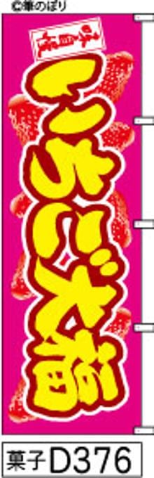 和菓子屋さんのオーダーメイドのぼり旗で既製品に名入れと色替えをしました。遠くまで良く目立っています。