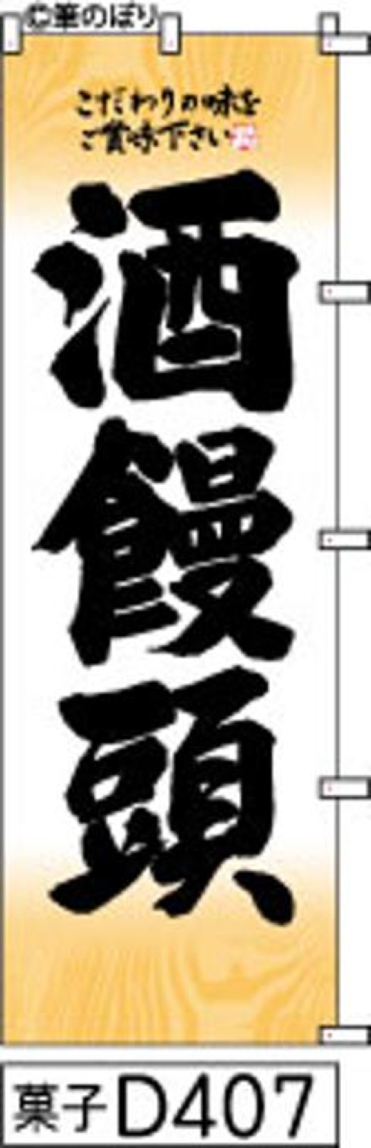 のぼり【酒饅頭】白地に木目黒の手書き筆文字[菓子D407](商標登録番号6807113)