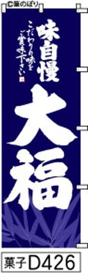 商品名:のぼり【大福】紺に和模様白抜き手書き筆文字[菓子D426](商標登録番号6807113)