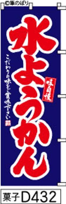 「のぼり【水ようかん】紺に赤の手書き筆文字[菓子D432](商標登録番号6807113)」