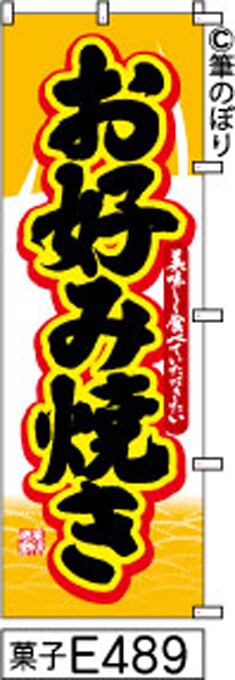 【お好み焼き】のぼり旗|送料無料 目立つ手書き筆文字[e489]白地にオレンジ和風柄黒