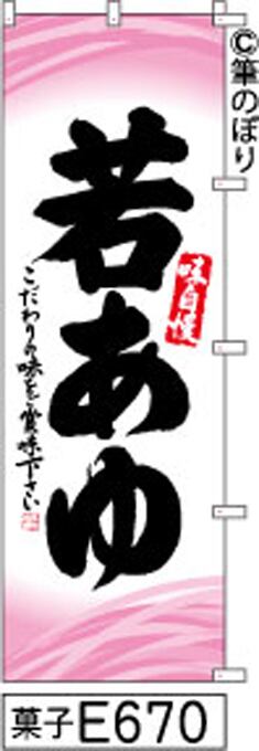 【若あゆ】のぼり旗|送料無料 目立つ手書き筆文字[e670]白地にピンク柄黒
