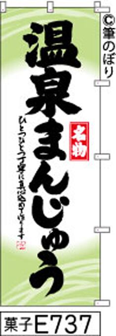 【温泉まんじゅう】のぼり旗|送料無料 目立つ手書き筆文字[e737]白地に薄緑和柄黒