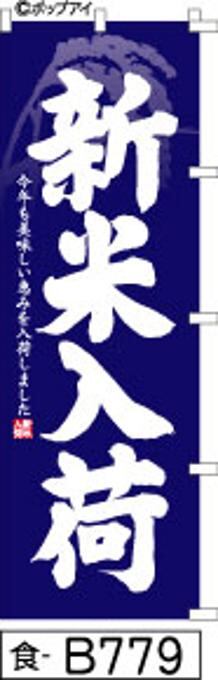 「のぼり【新米入荷】紺に白抜き筆文字[食B779]」
