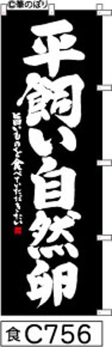 【平飼い自然卵】のぼり旗|送料無料 目立つ手書き筆文字[c756]黒白抜き