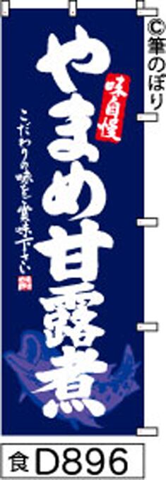 「のぼり【やまめ 甘露煮 紺の白抜き】手書き筆文字[d896](商標登録番号6807113)『受注生産』」