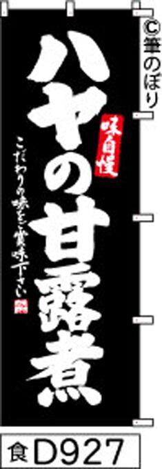 「のぼり【ハヤ 甘露煮 黒の白抜き】手書き筆文字[d927](商標登録番号6807113)『受注生産』」