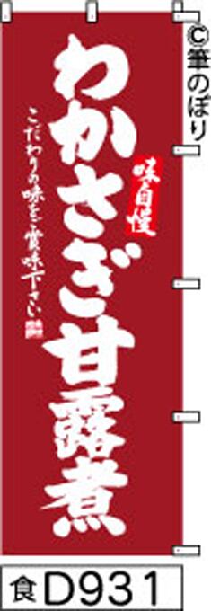 「のぼり【ワカサギ 甘露煮 エンジの白抜き】手書き筆文字[d931](商標登録番号6807113)『受注生産』」