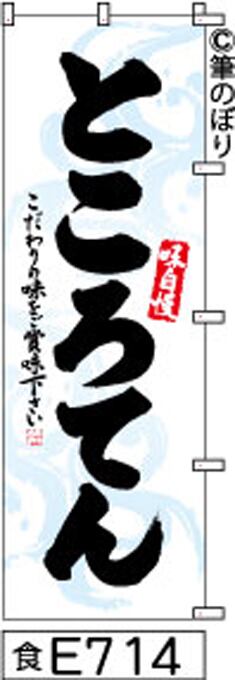 【ところてん】のぼり旗|送料無料 目立つ手書き筆文字[e714]白地に水色波柄黒