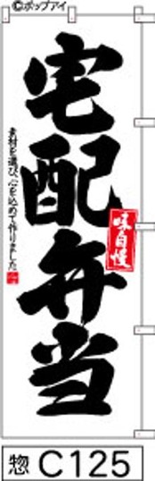 「のぼり【宅配弁当】白地に黒の手書きの筆文字[惣C125](商標登録番号6807113)」