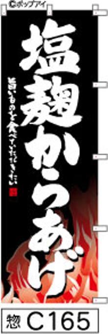 【塩麹からあげ】のぼり旗|送料無料 目立つ手書き筆文字[c165]黒に炎白