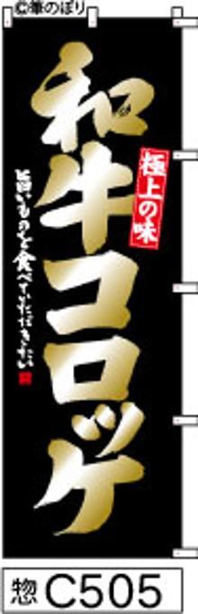 「のぼり【和牛コロッケ】黒に金の手書き筆文字[惣C505](商標登録番号6807113)」