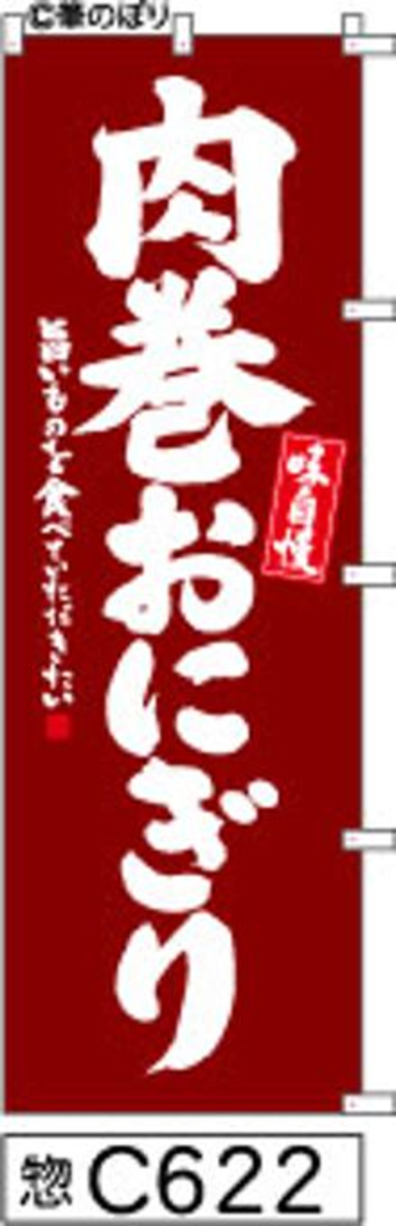 【肉巻おにぎり】のぼり旗|送料無料 目立つ手書き筆文字[c622]赤茶白抜き