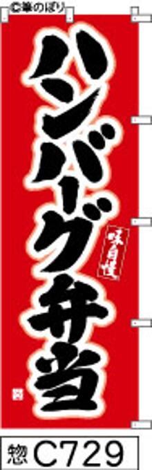 「のぼり【ハンバーグ弁当】赤に黒の手書き筆文字[惣C729](商標登録番号6807113)」