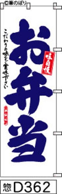 【お弁当】のぼり旗|送料無料 目立つ手書き筆文字[d362]白地に青
