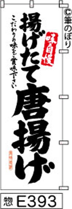 【揚げたて唐揚げ】のぼり旗|送料無料 目立つ手書き筆文字[e393]白地に黒