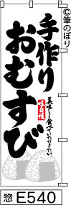 【手作りおむすび】のぼり旗|送料無料 目立つ手書き筆文字[e540]白地に黒