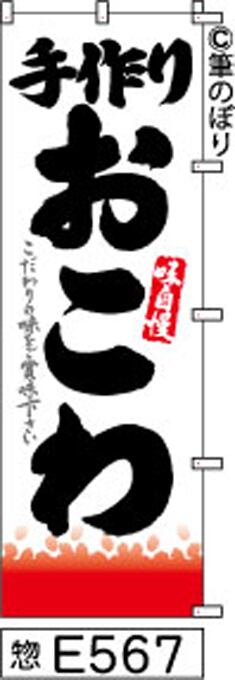 【手作りおこわ】のぼり旗|送料無料 目立つ手書き筆文字[e567]白地に赤模様黒