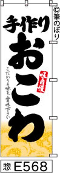 【手作りおこわ】のぼり旗|送料無料 目立つ手書き筆文字[e568]白地に山吹色模様黒