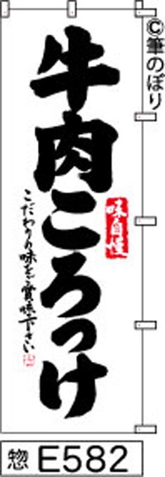 【牛肉ころっけ】のぼり旗|送料無料 目立つ手書き筆文字[e582]白地に黒