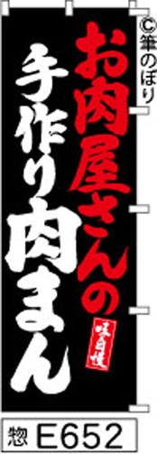 【お肉屋さんの手作り肉まん】のぼり旗|送料無料 目立つ手書き筆文字[e652]黒に赤と白