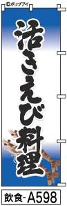 【活えび料理】のぼり旗|送料無料 目立つ手書き筆文字[a598]白と青に黒