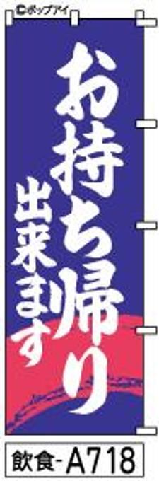 「のぼり【お持ち帰り】手書き筆文字[飲食A718](商標登録番号6807113)」