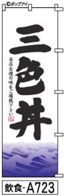 「のぼり【三色丼】手書き筆文字[飲食A723](商標登録番号6807113)」