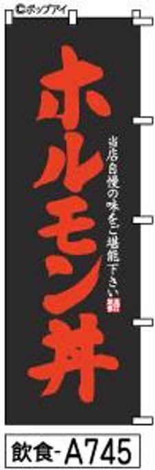 【ホルモン丼】のぼり旗|送料無料 目立つ手書き筆文字[a745]黒に赤