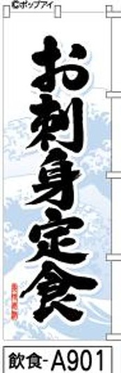 【お刺身定食】のぼり旗|送料無料 目立つ手書き筆文字[a901]薄青波絵黒
