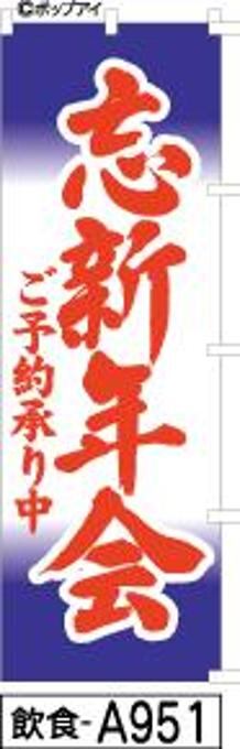 「のぼり【忘新年会】手書き筆文字[飲食A951](商標登録番号6807113)」