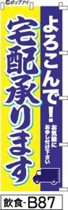 「のぼり【宅配承ります】青と黄色に紺の文字手書き筆文字[飲食B087](商標登録番号6807113)」
