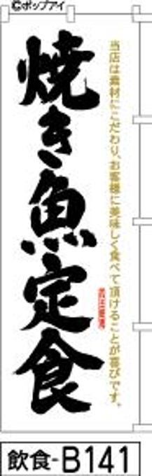 【焼き魚定食】のぼり旗|送料無料 目立つ手書き筆文字[b141]白地に黒