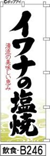 【イワナ塩焼き】のぼり旗|送料無料 目立つ手書き筆文字[b246]白地に黒
