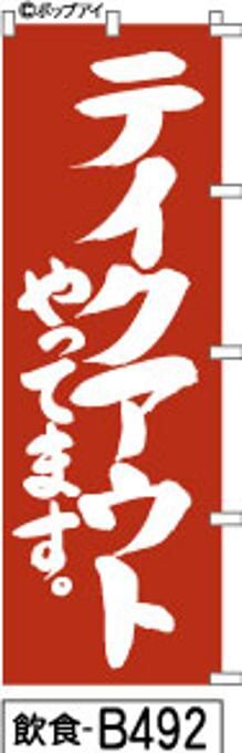 「のぼり【テイクアウトやってます】赤手書き筆文字[飲食B492](商標登録番号6807113)」