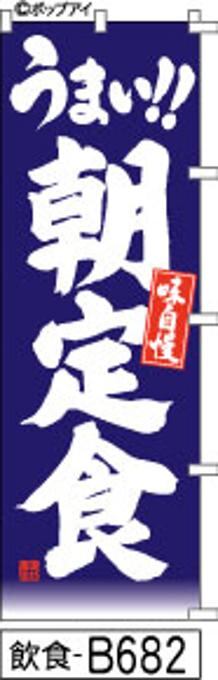 【朝定食】のぼり旗|送料無料 目立つ手書き筆文字[b682]紺白抜き