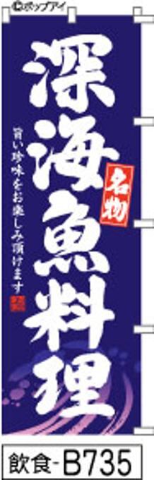「のぼり【深海魚料理】青に白の手書き筆文字[飲食B735](商標登録番号6807113)」