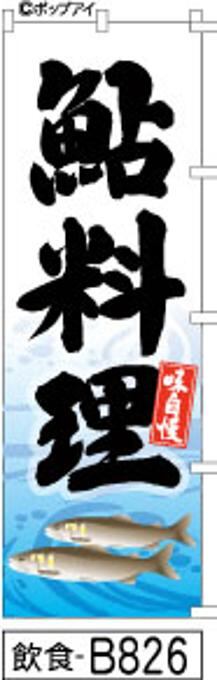 【鮎料理】のぼり旗|送料無料 目立つ手書き筆文字[b826]清流にアユ絵