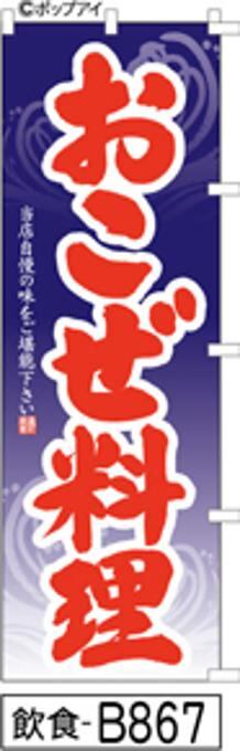 【おこぜ料理】のぼり旗|送料無料 目立つ手書き筆文字[b867]紺波柄赤