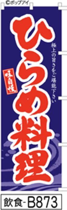 【ひらめ料理】のぼり旗|送料無料 目立つ手書き筆文字[b873]紺波柄赤