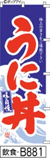 【うに丼】のぼり旗|送料無料 目立つ手書き筆文字[b881]青に大波赤